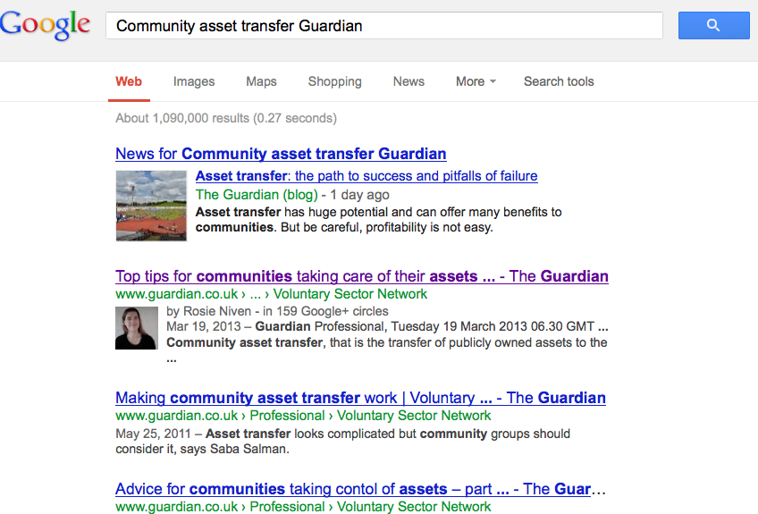Authorship allows a creator of content to claim ownership of their work by linking blogs and article to their Google+ profile. You might have stumbled upon already when you see a thumbnail and byline in your search results – here’s a screenshot of my entry to illustrate Authorship.